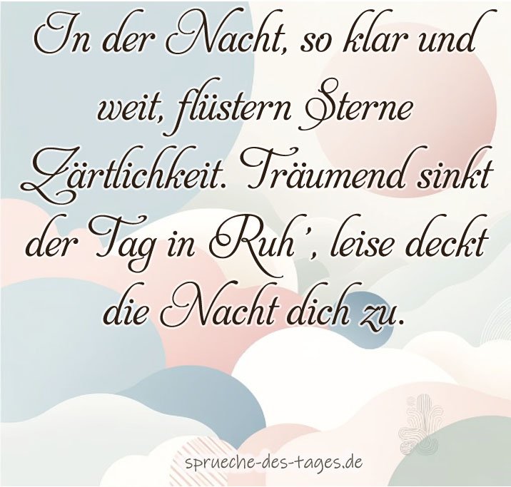 Willkommen in der Welt der romantischen Gute Nacht Gedichte, einem Ort, wo Worte sanft in die Welt der Träume führen. In diesem besonderen Artikel tauchen wir in die magische Welt der Abendpoesie ein, die sowohl für Kinder als auch für Erwachsene gedacht ist. Hier finden Sie Gedichte, die nicht nur zum Einschlafen anregen, sondern auch tiefe, emotionale Verbindungen schaffen. Diese Gedichte sind eine Quelle der Inspiration und Entspannung und bieten eine einzigartige Möglichkeit, den Tag gemeinsam ausklingen zu lassen. Die Auswahl der Gedichte zur Nacht spiegelt eine Vielfalt an Themen und Stilen wider, die perfekt geeignet sind, um in jeder Altersgruppe Freude und Ruhe zu wecken. Ob traditionelle Verse oder moderne Reime, jedes Gedicht ist eine Reise in die Welt der Fantasie und des Friedens. Lassen Sie uns gemeinsam eintauchen in diese wundervolle Sammlung, die darauf wartet, Ihre Abende zu bereichern.