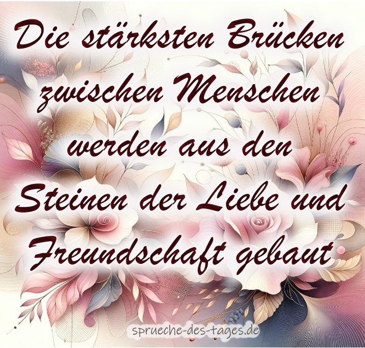 Tiefgründige Freundschaftssprüche sind eine wunderbare Möglichkeit, um die tiefe Verbundenheit zwischen Freunden zum Ausdruck zu bringen. Durch liebevolle Worte, die Gefühle von Vertrauen, Unterstützung und Zuneigung vermitteln, können Freundschaftssprüche eine starke Bindung zwischen Menschen stärken. Sie erinnern uns daran, wie wichtig es ist, in guten und schlechten Zeiten füreinander da zu sein und einander zu unterstützen. Diese Sprüche sind nicht nur schöne Worte, sondern auch Ausdruck einer tiefen und bedeutsamen Freundschaft, die über Entfernungen und Lebensphasen hinweg bestehen kann.