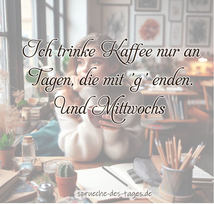 - „Ich trinke Kaffee nur an Tagen, die mit ‚g‘ enden. Und Mittwochs.“ ☕️📆