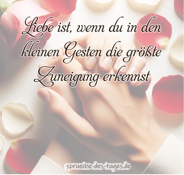 In der Welt der Gefühle und Emotionen nimmt die Liebe einen besonderen Stellenwert ein. Sie inspiriert, bewegt und verbindet Menschen auf tiefgreifende Weise. „Liebe ist…“ Sprüche fangen diese universelle Erfahrung in Worten ein, indem sie die Essenz der Liebe durch romantische Vergleiche und poetische Bilder ausdrücken. In diesem Abschnitt möchten wir Ihnen eine Sammlung kostenloser Bilder zu genau diesem Thema anbieten. Jedes Bild fängt einen einzigartigen Liebesspruch ein, der die Vielfalt und Tiefe der Liebe in all ihren Formen illustriert. Diese Sammlung ist gedacht, um geteilt zu werden – sei es als Ausdruck eigener Gefühle, als inspirierende Botschaft für einen geliebten Menschen oder einfach als eine Erinnerung an die Schönheit und Kraft der Liebe in unserem Leben.