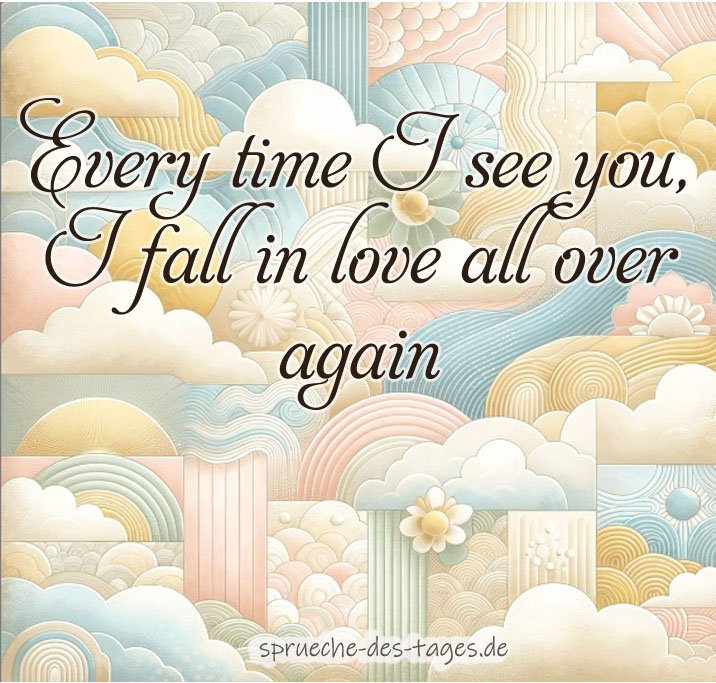 - „Every time I see you, I fall in love all over again.“ – Jedes Mal, wenn ich dich sehe, verliebe ich mich wieder neu in dich.