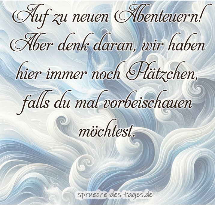 - „Auf zu neuen Abenteuern! Aber denk daran, wir haben hier immer noch Plätzchen, falls du mal vorbeischauen möchtest.“ 🍪🗺️