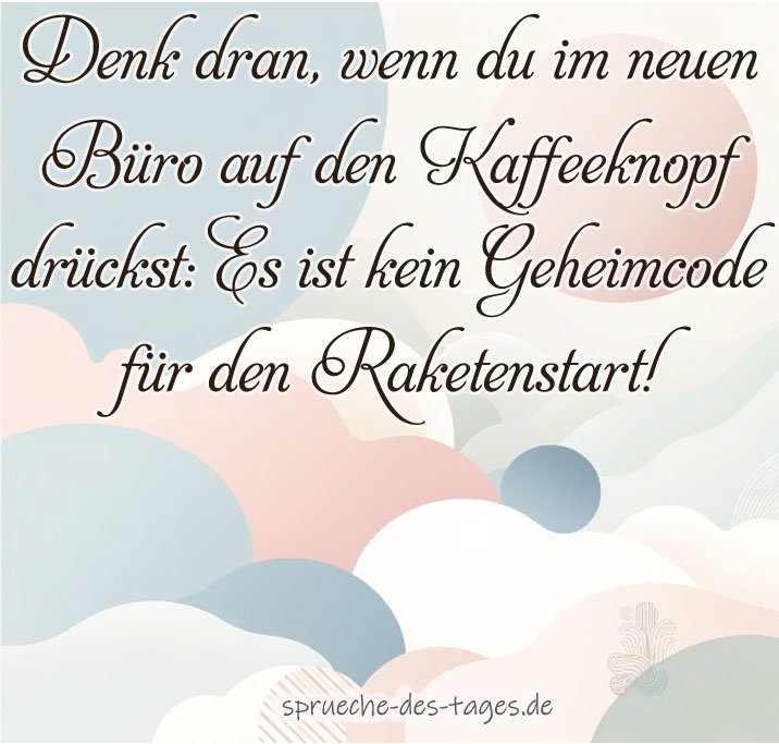 - „Denk dran, wenn du im neuen Büro auf den Kaffeeknopf drückst: Es ist kein Geheimcode für den Raketenstart!“ 🚀☕