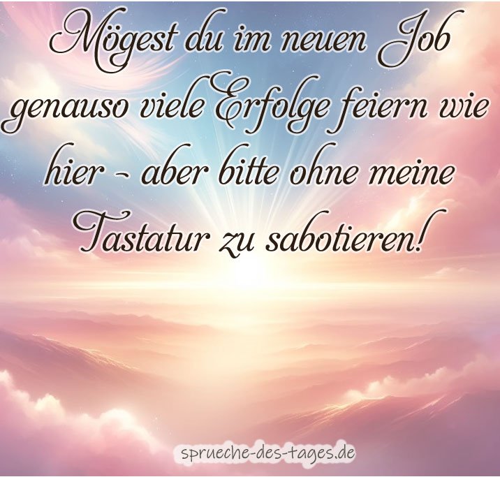 - „Mögest du im neuen Job genauso viele Erfolge feiern wie hier – aber bitte ohne meine Tastatur zu sabotieren!“ 🎉⌨️