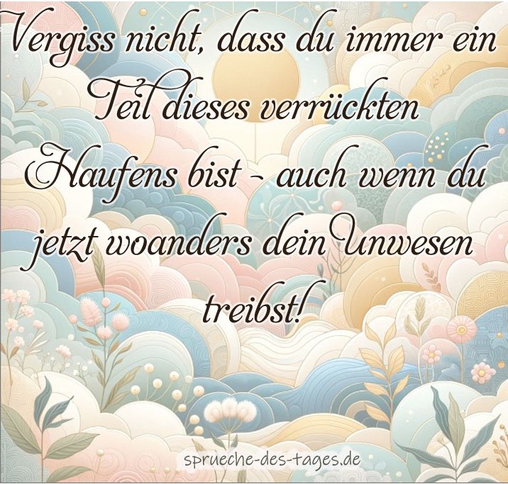 - „Vergiss nicht, dass du immer ein Teil dieses verrückten Haufens bist – auch wenn du jetzt woanders dein Unwesen treibst!“ 👹👋