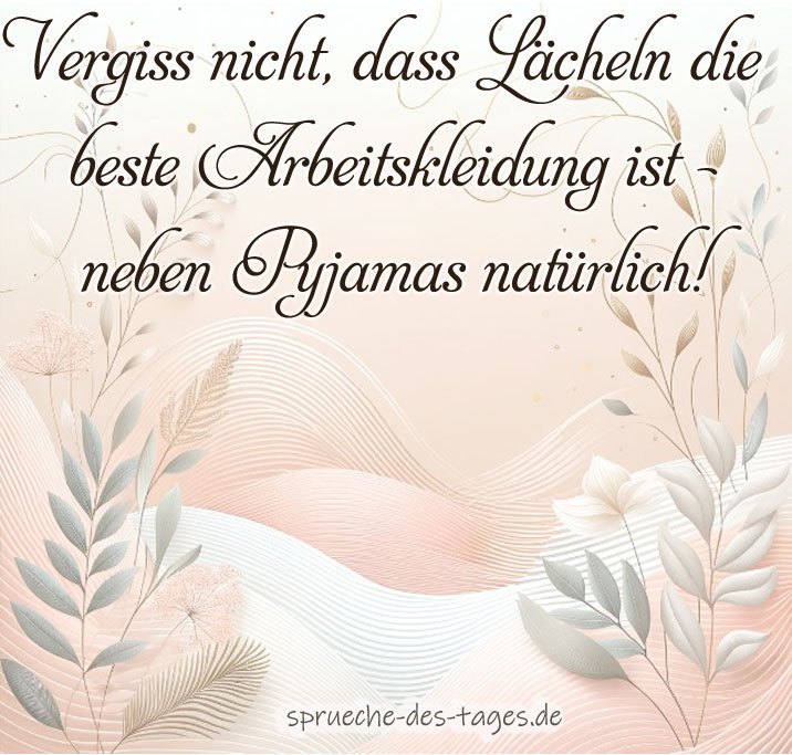 - „Vergiss nicht, dass Lächeln die beste Arbeitskleidung ist – neben Pyjamas natürlich!“ 😄👔