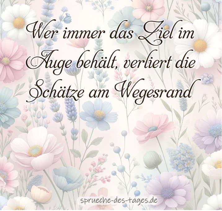 - Wer immer das Ziel im Auge behält, verliert die Schätze am Wegesrand.