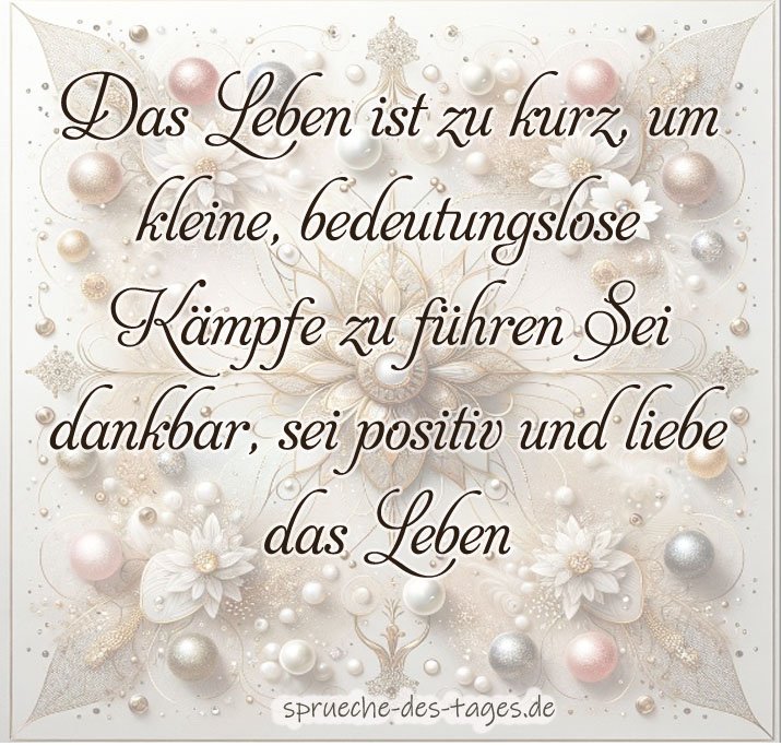 Das Leben ist zu kurz um kleine bedeutungslose Kaempfe zu fuehren Sei dankbar sei positiv und liebe das Leben