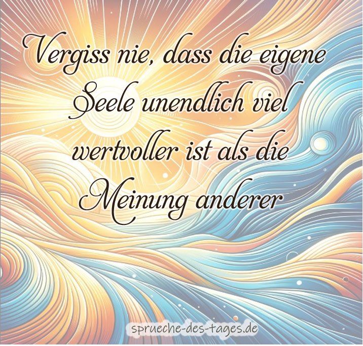Vergiss nie, dass die eigene Seele unendlich viel wertvoller ist als die Meinung anderer.