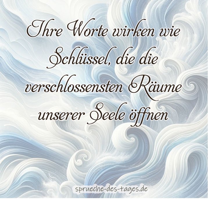 - „Ihre Worte wirken wie Schlüssel, die die verschlossensten Räume unserer Seele öffnen.“ 🔑💖